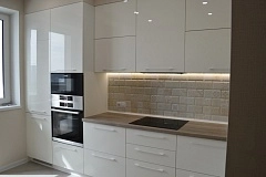 Кухня белая столешница под дерево Ли41