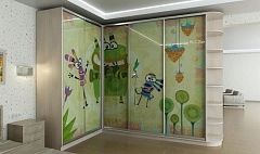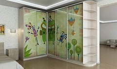 Зеленый Угловой шкаф-купе в детскую комнату с фотопечатью “Мультик” ШГ-4